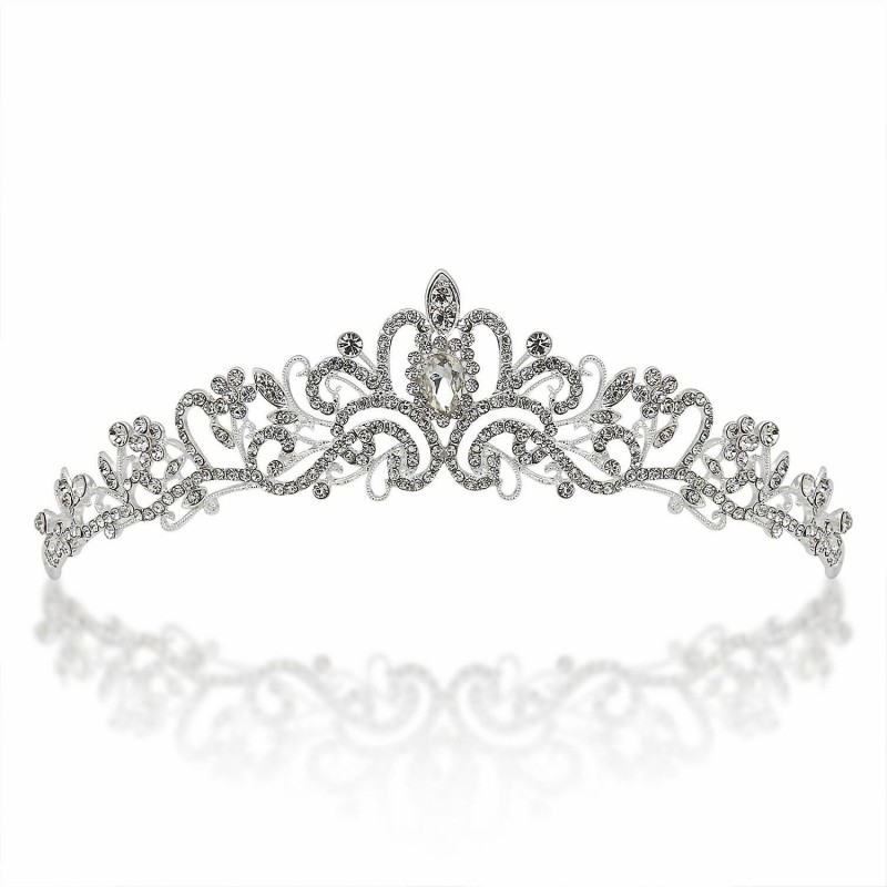 Tiara nuziale a corona, argento, metallo con cristalli, 16x22x4,5 cm