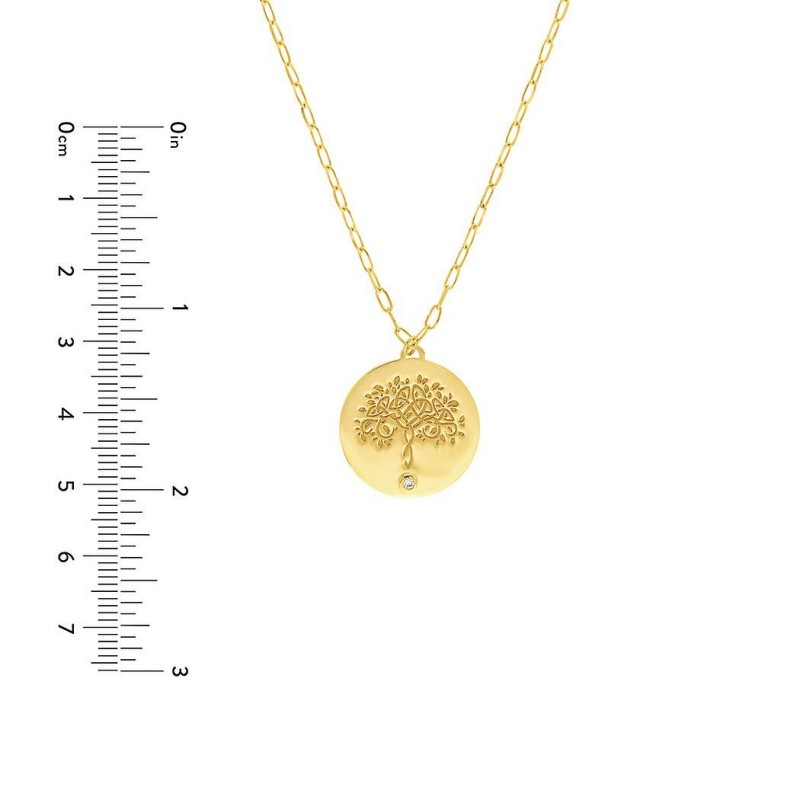 Collana regolabile in oro giallo 14k con medaglione albero della vita in diamanti da 0,015 dwt